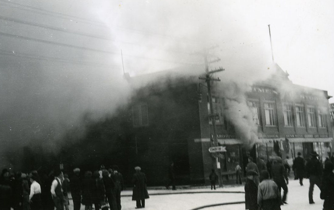 The Campbell Block, now home to Nowco Home Hardware, was first built in 1896. In 1901, A.M. Campbell owned the building and over the years, the store expanded. In 1920, the formerly wooden building was resurfaced with brick as per a town bylaw that passed in 1907. Disaster struck in 1940 when the original wooden structure caught on fire. Thankfully, the building itself survived because of its new brick façade. You can see a mural of this fire in the back alley behind the Royal Bank!