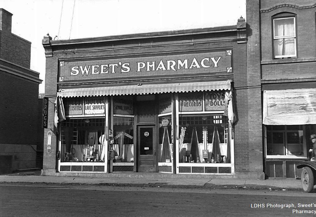 The Sweet’s Pharmacy building maintains much of its original integrity. It features masonry construction, a wide storefront with large windows; its original Sweet’s Pharmacy sign was located during the 1992 Alberta Main Street Program.